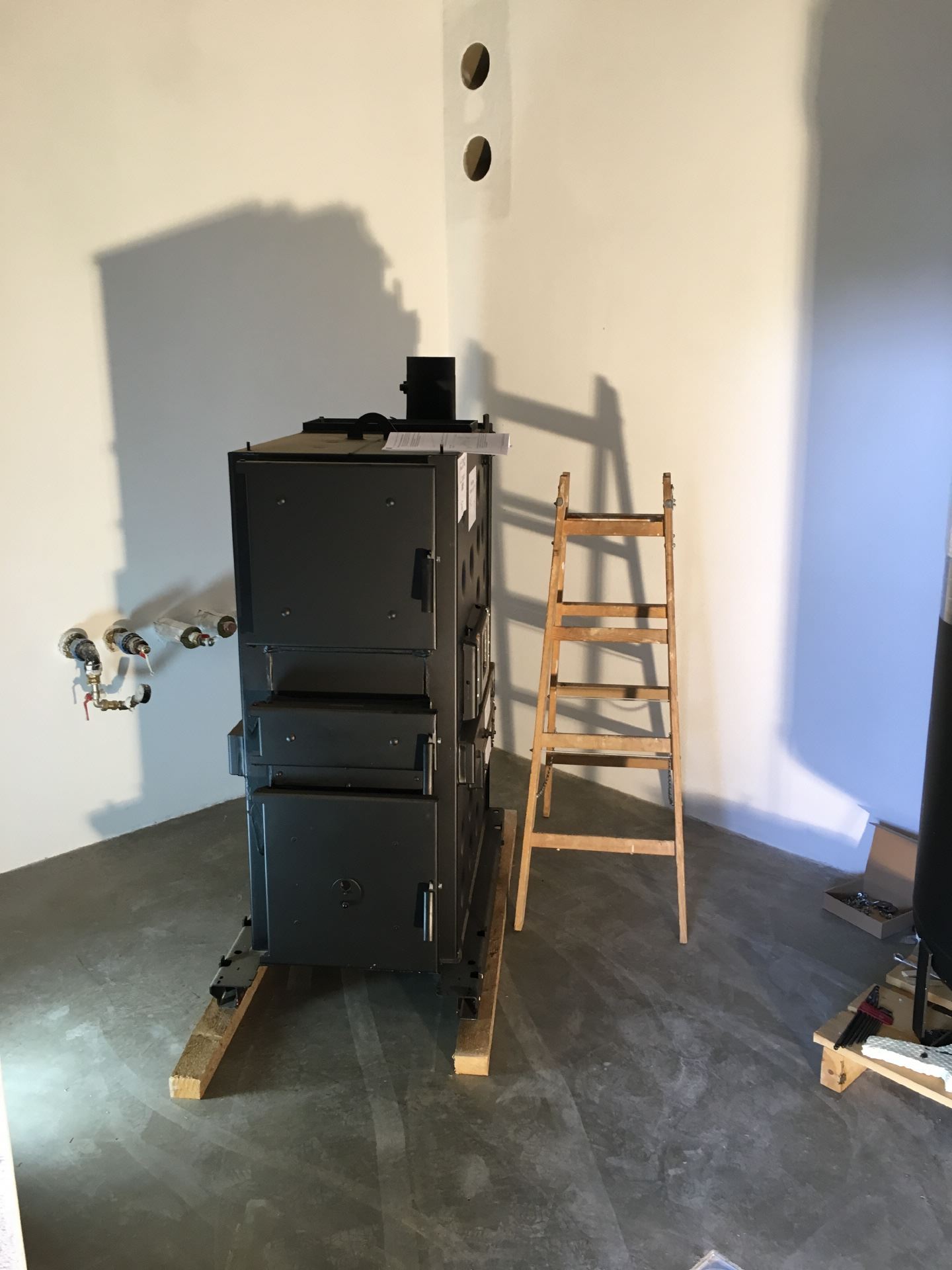 Stückholz- Pellets Kombi Kessel zur Beheizung von zwei Wohneinheiten (Alt- und Neubau).
