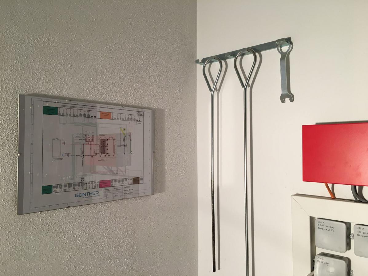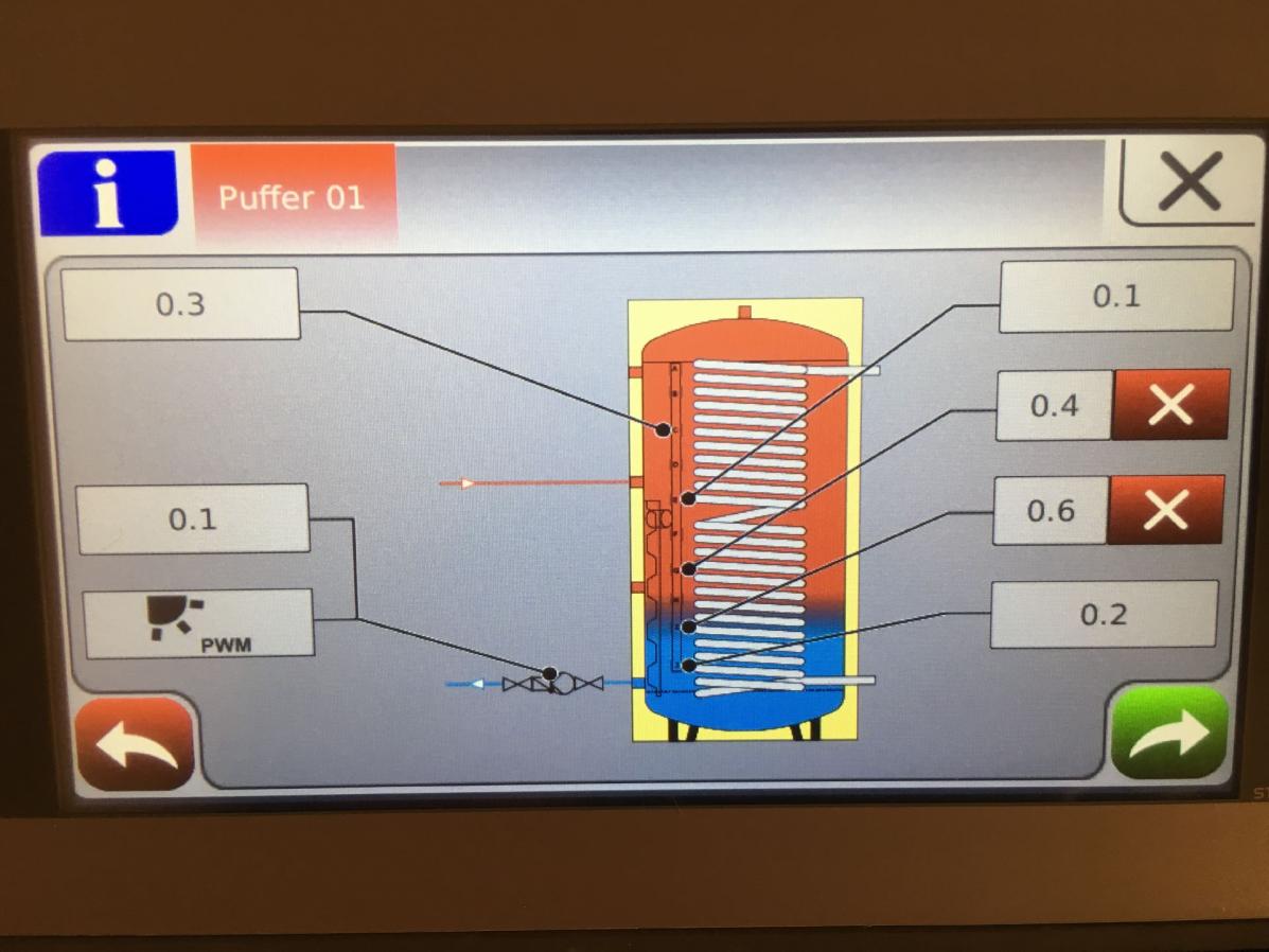 Pufferspeicher, Kombi- Pufferspeicher zur Warmwasserbereitung und Solareinbindung, drei Heizkreise (Heizkörper Altbau, Fußbodenheizung Neubau, Handtuchheizkörper Bäder)